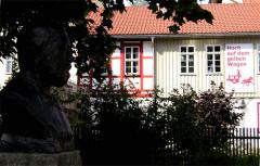 Das Grab des Dichters befindet sich auf dem Meininger Parkfriedhof, eine Denkmalbüste neben dem Baumbachhaus.