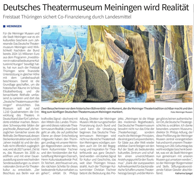 Im Mai 2000 – vor 25 Jahren! - wurde auch das Theatermuseum „Zauberwelt der Kulisse“ mit diesem Bühnenbild eröffnet. Die Museen nehmen das Jubiläum, aber auch Schillers 220. Todestag zum Anlass, dieses detailreiche, beinahe plastische Bühnenbild erneut zu präsentieren.